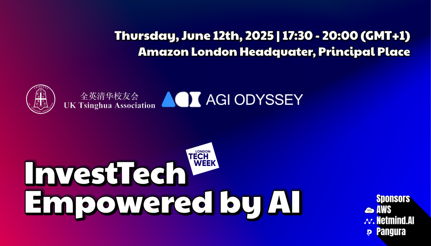 Join the UK Tsinghua Association (UKTA) and AGI Odyssey (AGIO) for an exclusive London Tech Week Fringe Event, "InvestTech empowered by AI." This timely and critical event will delve deep into the revolutionary impact of Artificial Intelligence on the investment sector.